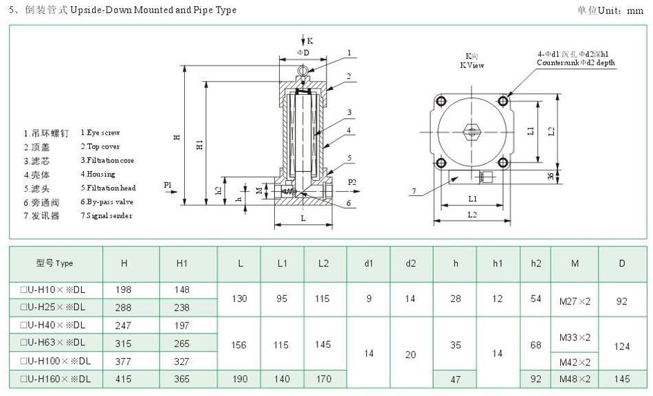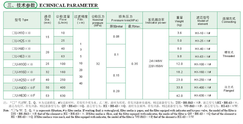 ZU-H壓力管力過濾器安裝在液壓系統(tǒng)的壓力管路上,用以濾除液壓油中混入的機(jī)械雜質(zhì)和液壓油本身化學(xué)變化所產(chǎn)生的膠質(zhì)、瀝清質(zhì)、炭渣質(zhì)等,從而防止閥芯卡死、節(jié)流小孔縫隙和阻尼孔的堵塞以及液壓元件過快磨損等故障的發(fā)生